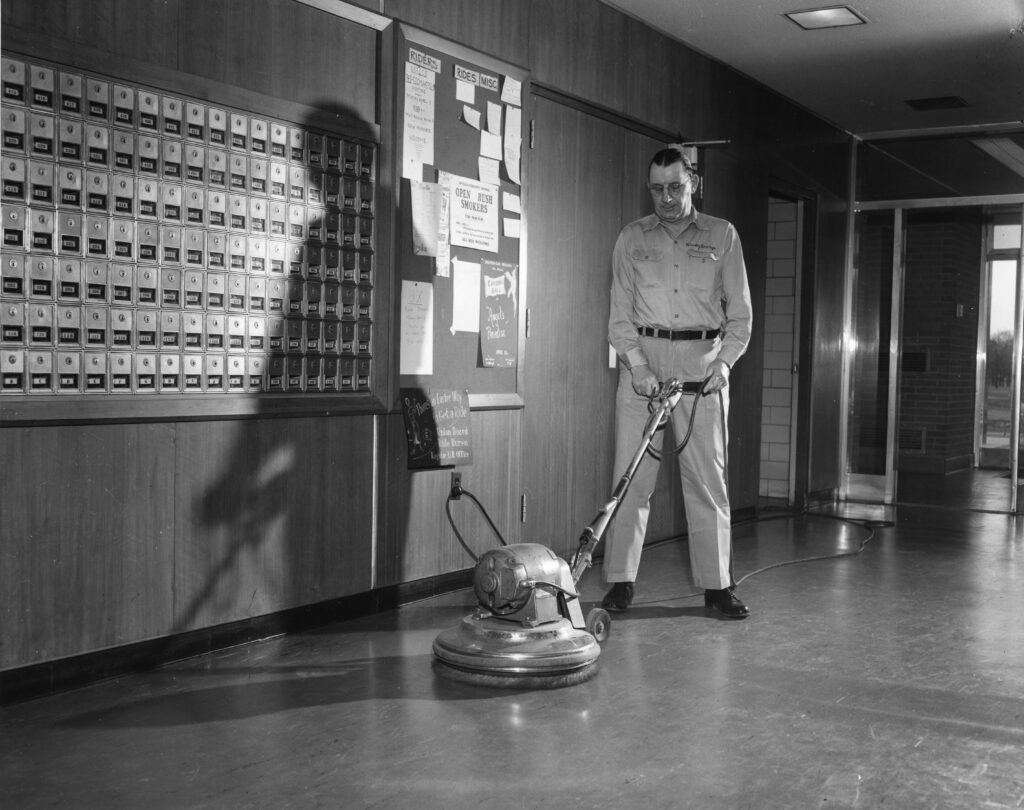 After the original owner of this cleaning company decided to retire, he sold the company to my dad in 1976. I continued to help clean and after receiving my driver’s license, I started cleaning more buildings and then started supervising.